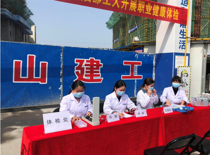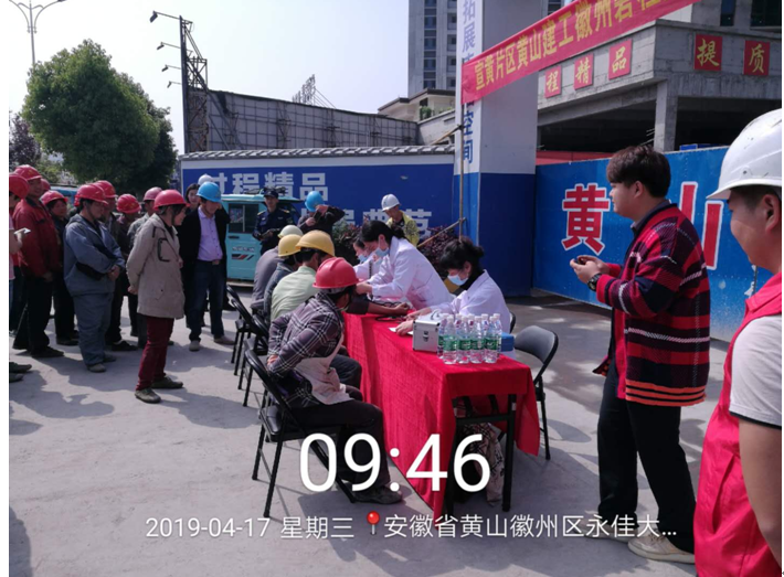 2019年4月17日上午9時,黃山建工集團承建的徽州碧桂園德源項目工程東大門,人聲鼎沸、歡聲笑語,每個人臉上都洋溢著幸福的笑容,他們排著隊,有組織、有秩序地參加由碧桂園德源工程施工項目部組織的“關愛健康、免費體檢”活動。此次體檢活動邀請了屯溪同仁門診部的四名醫生,分科體檢,對每位職工的心率、血壓、外科、口腔等做了細致的檢查,并做好體檢記錄,同時對工友們關心的日常生活問題、常識做了解答和溫馨提示,此次項目部參加體檢人員惠及95名。本次活動是為了增強員工關懷,保障員工身體健康,營造”平安、和諧、幸福、美麗”的示范工地。