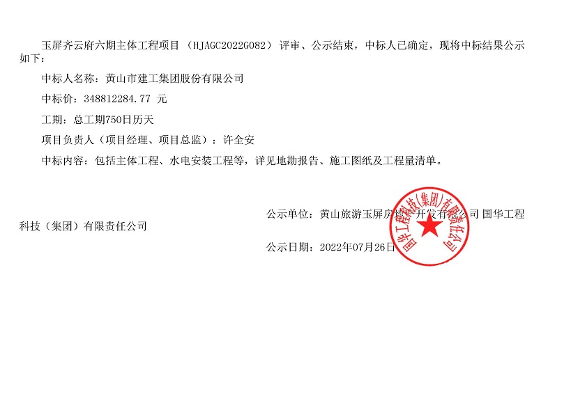 7月22日公司經(jīng)營(yíng)一線再傳捷報(bào),一舉中標(biāo)了至今為止我公司史上中標(biāo)的最大單位建筑項(xiàng)目--玉屏齊云府六期主體工程,總建筑面積約15.1萬(wàn)平方米,總造價(jià)348812284.77 元,為公司贏得了良好的社會(huì)效益。