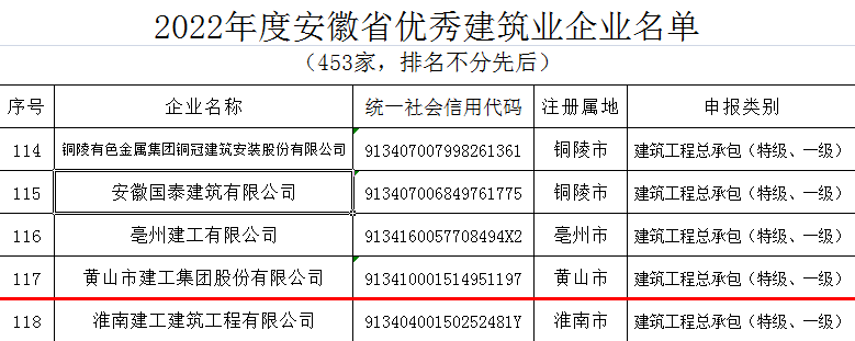 近日,安徽省住房和城鄉(xiāng)建設(shè)廳發(fā)布了“2022年度安徽省優(yōu)秀建筑業(yè)企業(yè)”名單,黃山建工集團(tuán)憑借企業(yè)經(jīng)營發(fā)展、管理創(chuàng)新能力、企業(yè)建造能力、企業(yè)文化建設(shè)、社會責(zé)任履行等方面的卓越表現(xiàn)再次名列榜單――建筑工程總承包類(特級、一級類別)省優(yōu)秀建筑業(yè)企業(yè),連續(xù)多年斬獲該項殊榮。