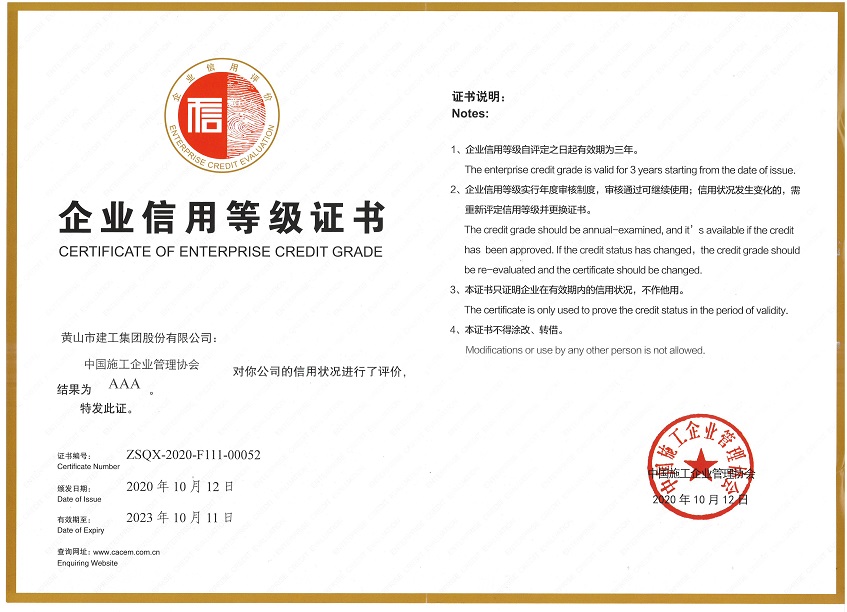 中國施工企業AAA級信用企業